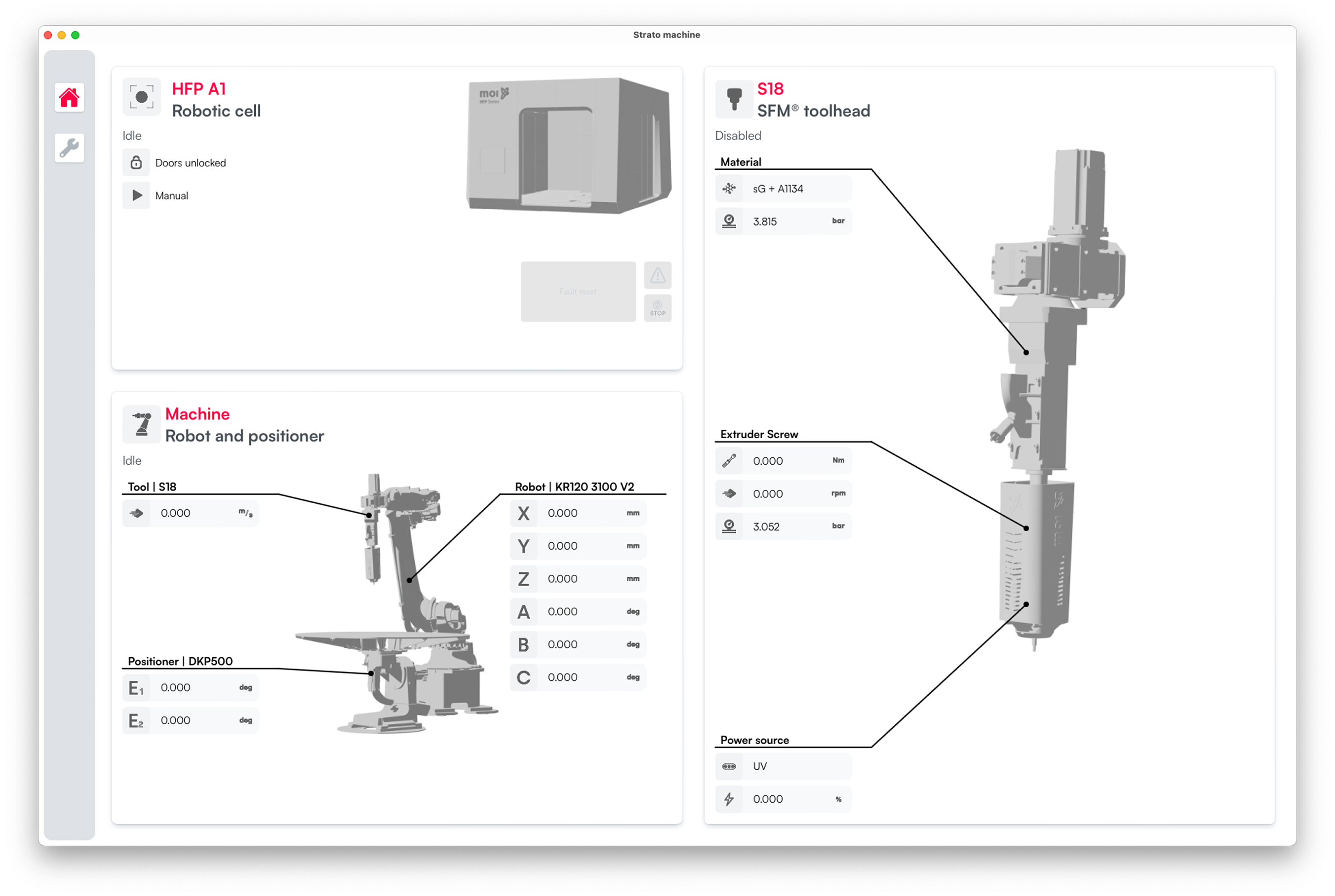 Strato Machine is the machine-side software responsible for executing manufacturing instructions generated in Strato. Acting as the control layer between the digital process definition and the physical hardware, it manages motion systems, toolheads, and auxiliaries from a unified interface. Strato Machine synchronizes motion, material deposition, and curing behavior in real time, ensuring stable and repeatable execution of manufacturing processes. By eliminating the need for G-code adaptation, post-processing, or direct robot programming, Strato Machine enables deployment of advanced manufacturing workflows directly on the production floor.